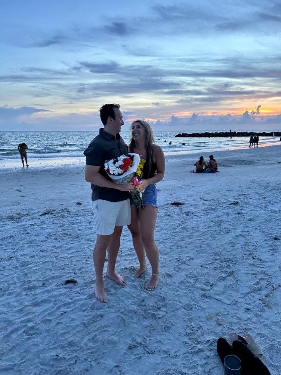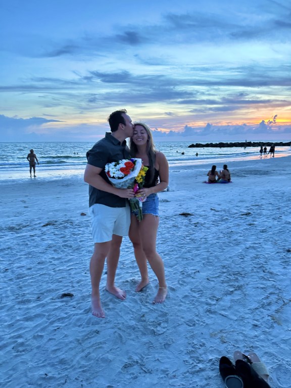 Alex surprised Whitney with a ring at sunset while vacationing alongside the Gulf Coast.
